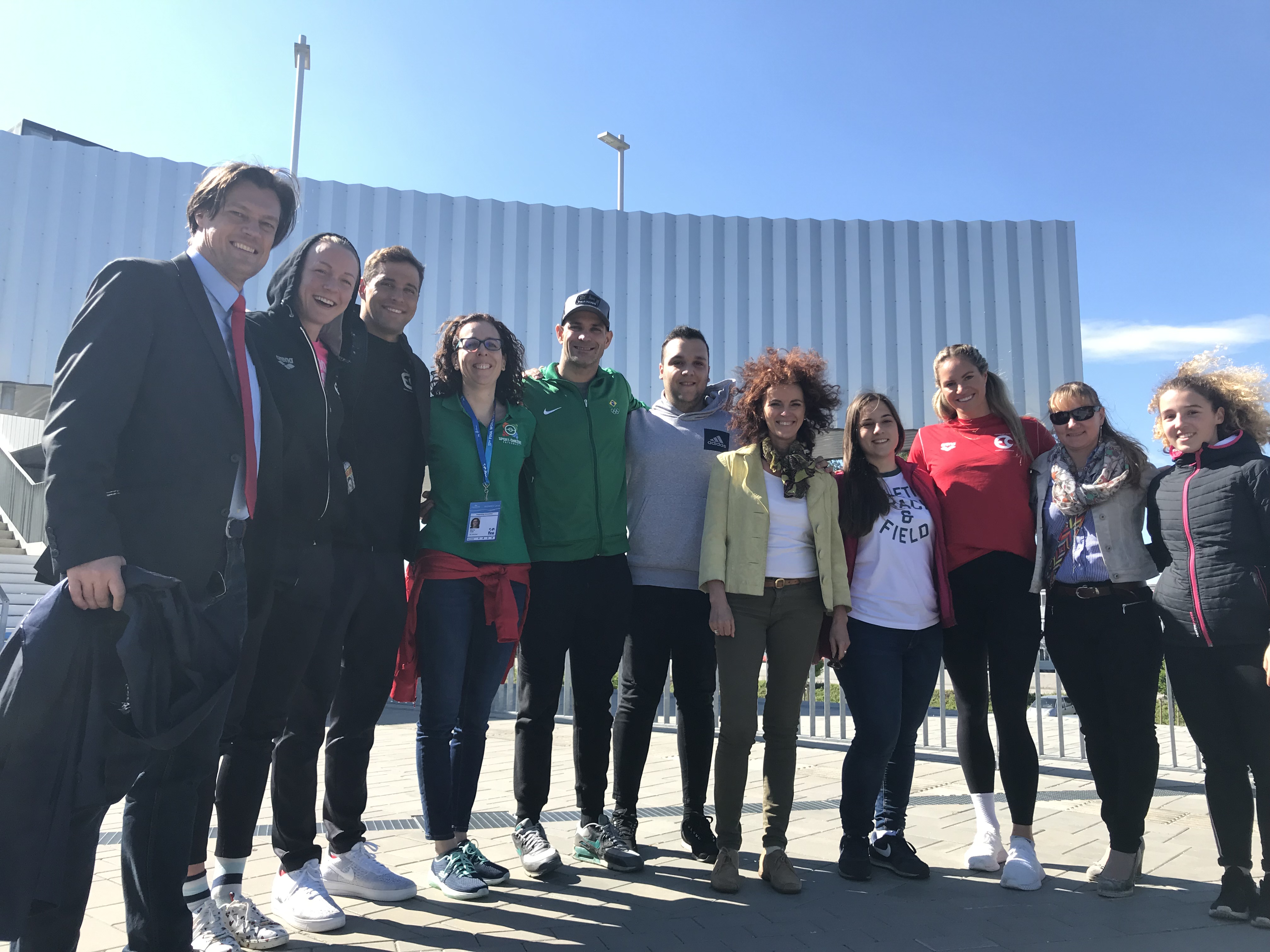 Íme egy fotó, amelyen olyan úszónagyságok álltak össze az önkéntesekkel és a koordinátorokkal, mint Sarah Sjöström, Chad Le Clos, Joao Gomes Junior és Emily Seebohm.