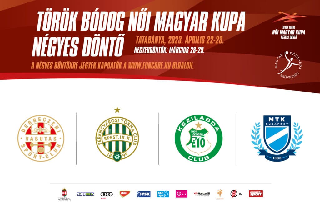 Hamarosan végéhez érnek a női Magyar Kupa küzdelmei, a trófea sorsáról április 22-én és 23-án, Tatabányán döntenek majd a négyes döntőbe jutó csapatok. A Ferencváros a Vác elleni hatgólos győzelmével biztosította helyét az elődöntőben, a fővárosi együtteshez csatlakozott az MTK Budapest, amely a Budaörsöt múlta felül magabiztosan, a Debrecen végig vezetve nyert a Siófok ellen, míg a Győr nagyarányú győzelmet aratott Szombathelyen. Jelentkezz önkéntesnek és segítsd munkáddal az esemény sikeres és biztonságos lebonyolítását!